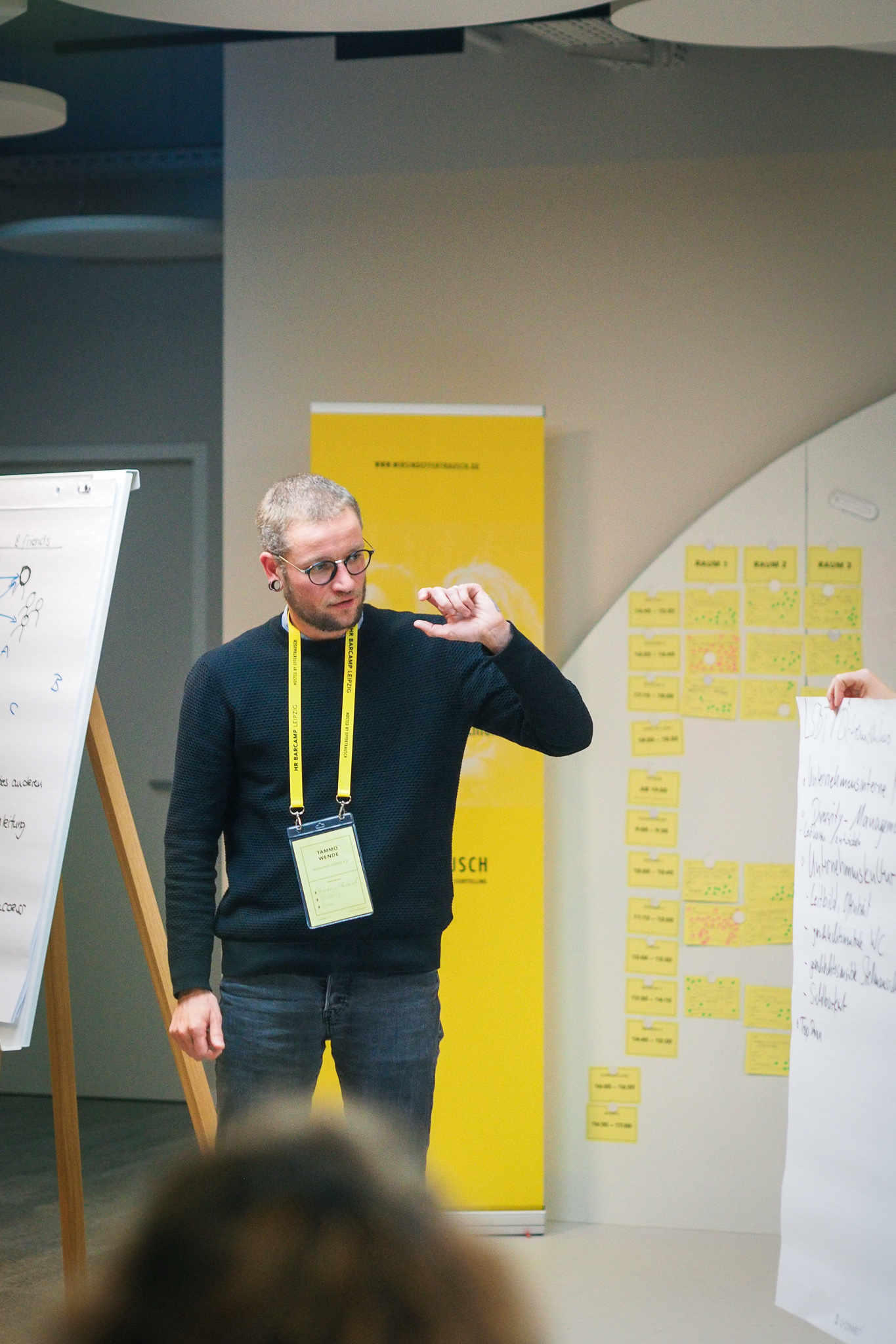 Zu Beginn der Veranstaltung wird durch unsere Moderatorin eine Vorstellungsrunde angeleitet. Im Anschluss ist jede und jeder dazu aufgefordert eigene Themen vorzuschlagen. Du stehst vor einer Herausforderung und möchtest offene Frangen diskutieren? Oder möchtest du Wissen, Learnings und Fails teilen? Einen Workshop anleiten hört sich auch spannend an? Dann ist das BarCamp-Format genau das Richtige für dich!